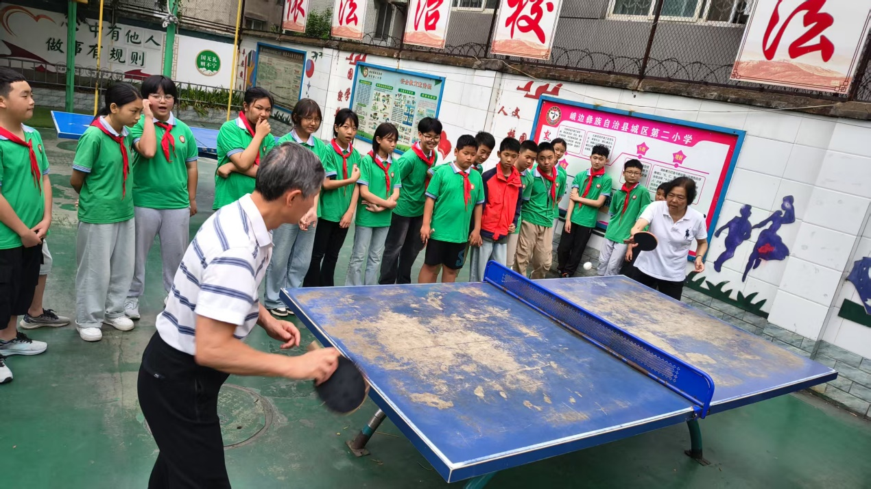5月15日,关工委成员深入“峨边彝族自治县中学、县街小学和县第二小学开展“送教下乡”活动。雷咏时、郭希涛、武川红、国栋同志四位老师分别为不同年级带来体育与艺术融合的特色公开课,课堂内容新颖、形式多样,受到当地师生的一致好评。