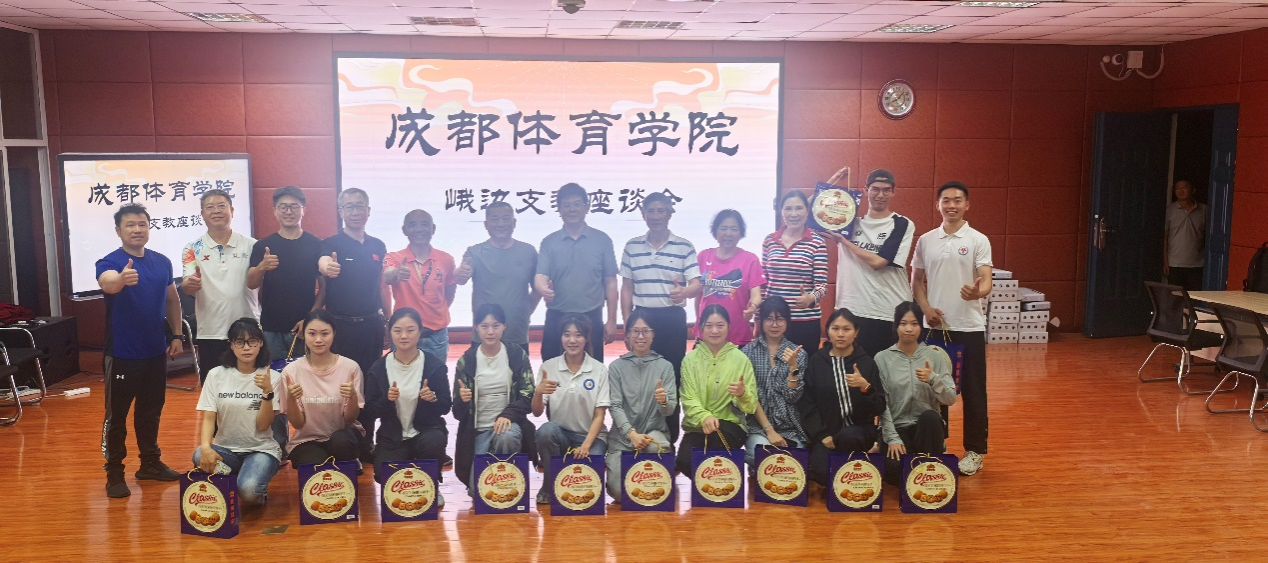 当晚,在峨边中学举行的“成都体育学院峨边支教团座谈会”上,老同志们给与正在当地支教的在校大学生赠送的慰问品,并与他们促膝长谈,细致聆听他们在教学工作中的所思所感,并给予悉心指导与鼓励。“五老”们肯定了同学们在艰苦环境中坚持奉献的精神,并勉励他们将支教实践作为成长的沃土,持续淬炼教育情怀与专业能力。