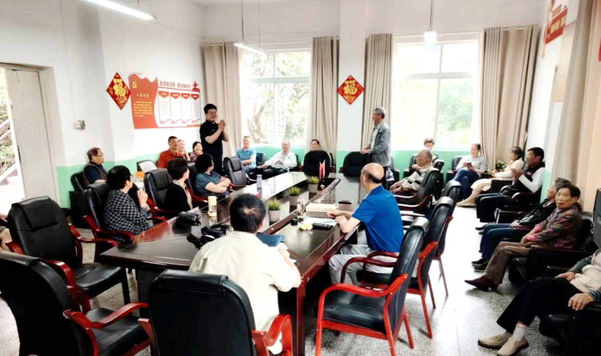 此次集中组织生活筹备周密,离退休工作处党委及各支部委员在场地布置、人员通知、学习资料准备等环节均做了细致安排,确保了活动的顺利高效。活动采取了线上与线下相结合的模式:线下由各支部书记领学,重点解读相关文件精神;线上则通过微信群推送学习要点,确保了学习教育的全覆盖,特别是针对部分年老体弱、行动不便或因病无法集中参会的党员,各支部特别安排了“送学上门”服务,将学习资料和组织的关怀送到每一位老党员家中,确保学习教育“一个不掉队”。
